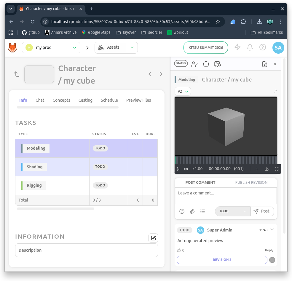 Once complete, the preview is available in Kitsu’s review interface, making it easy for team members and supervisors to give feedback without waiting for high-resolution renders.