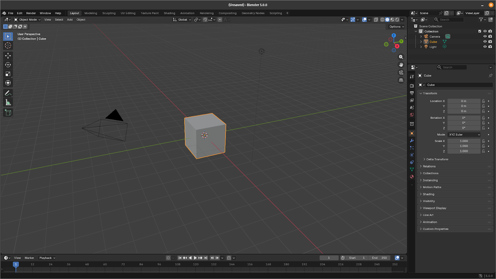 Before we can create an animated preview, we need a starting object in the scene. For this tutorial, we’ll use Blender’s default cube.