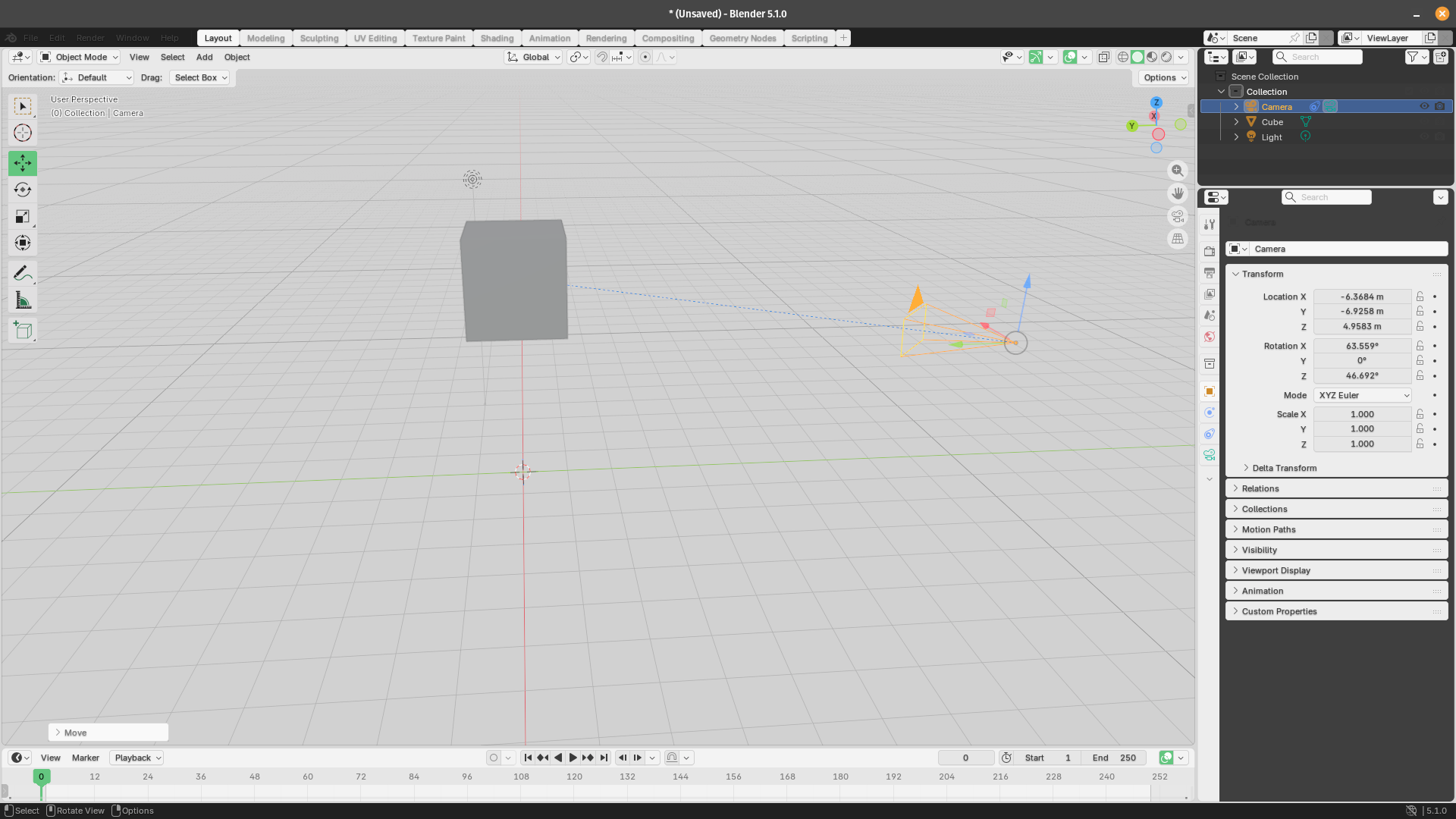 As you can see, when we move the camera, the view is still centered on the cube object. Before:
