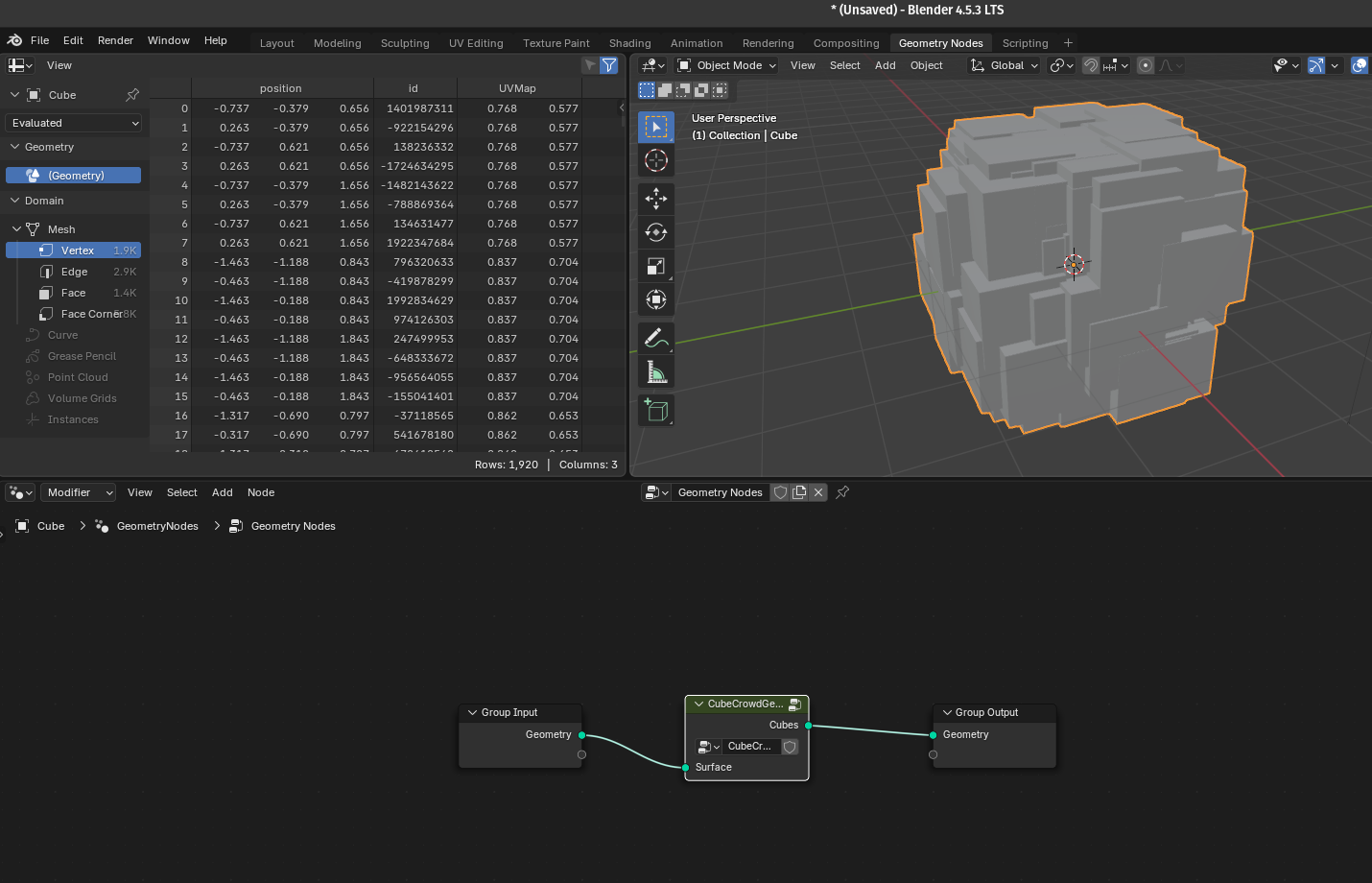 4. Create a Custom “Cube Crowd Generator” Node Group Programmatically