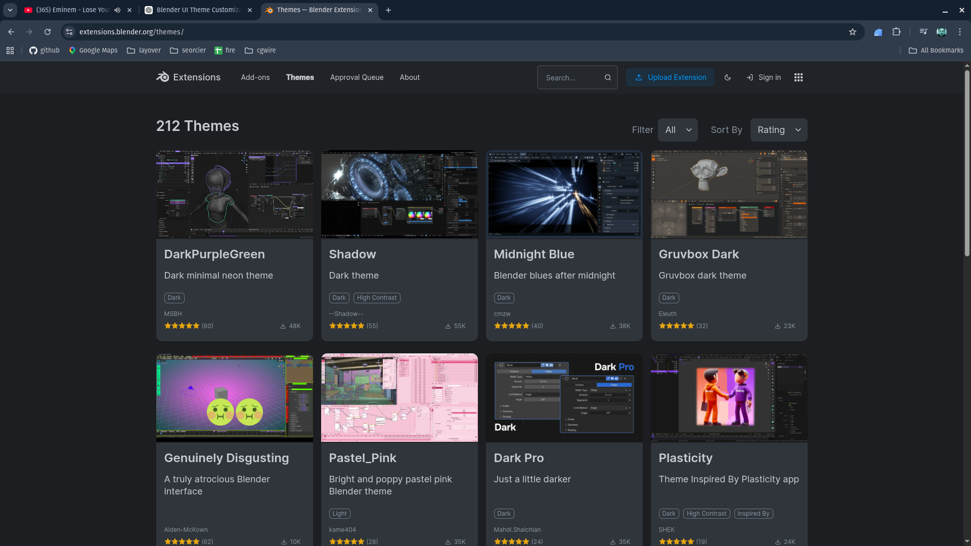 Once you've built something you're proud of, the Blender community can benefit from it. The official home for community themes is the Blender Extensions marketplace.