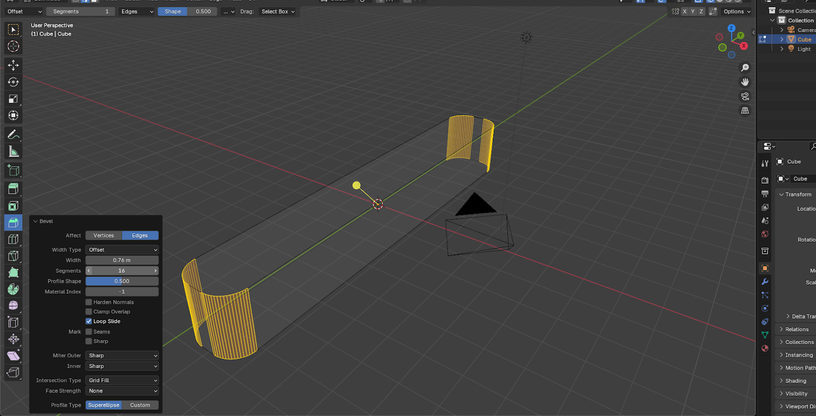 - In Edit mode, bevel the edges to round each side. Make sure to use