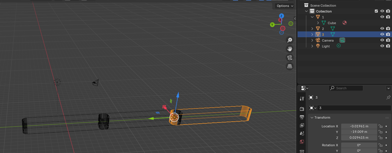 - Put each object's origin at its joint. For correct rotation, the origin must be at the joint end of each segment. Use the cursor tool to position the origin. Then, in