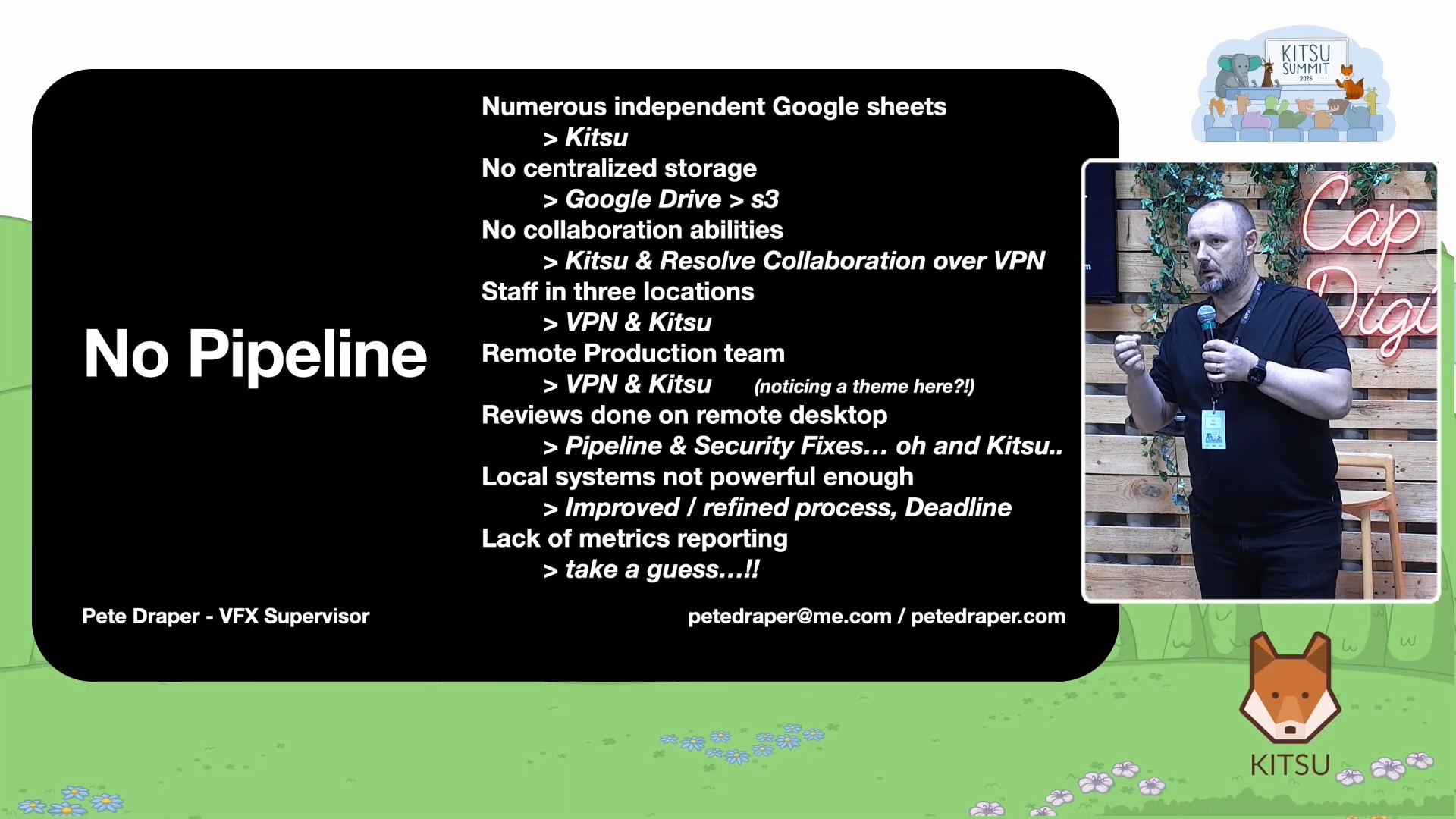Over the course of his presentation at the 2026 Kitsu Submit, Pete Draper walked attendees through two major chapters of his career and how Kitsu, the open-source production tracking platform developed by CGWire, became the operational backbone of both.