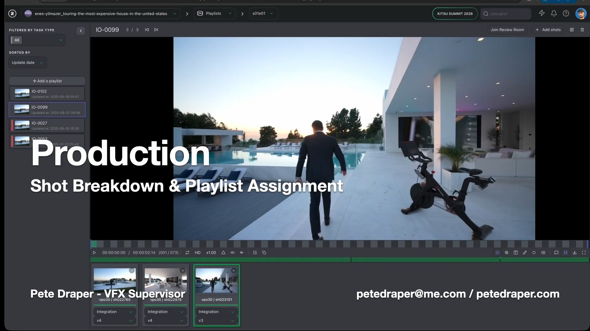 Pete's team solved this by naming each Kitsu playlist after the corresponding insertion order number. Because playlists lock to a specific version when you add a shot to them, and do not automatically update when a new version is published, the playlist became a stable record of which version belonged to which campaign. "By naming the actual playlist based on the same insertion order number, you got a correlation," he said.