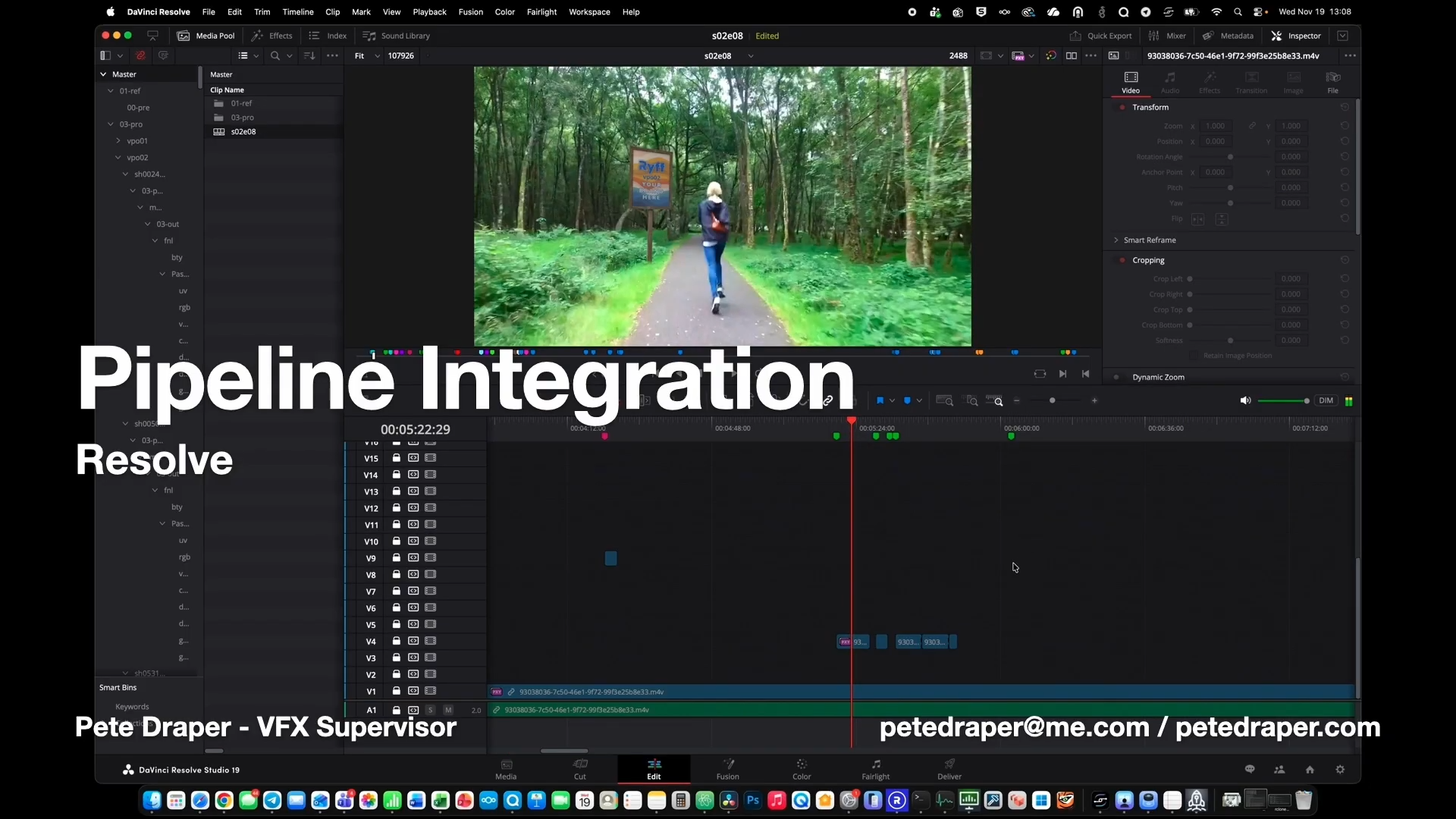 Ryff used DaVinci Resolve as its primary compositing tool. This was a deliberate choice based on the need for precise grain matching, color space accuracy, and the ability to guarantee that the output matched the input down to a technical level. Resolve also supported genuine multi-user collaboration over a VPN, which mattered for a remote team of 20 artists.
