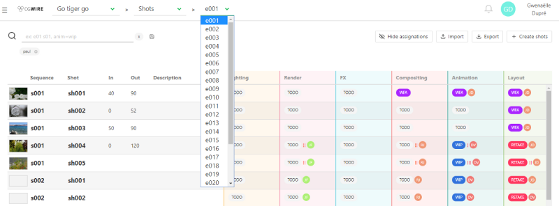 It was the opportunity too to improve the navigation. Drop down menus are now available on all the pages related to current production. They allow you to switch from production, episodes or entities at any time!