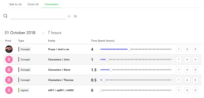 You won’t have to stay behind your CG artists and take note of everything they are doing anymore. The CG artists will now be able to easily fill the time sheet by themselves. Their only task will be to set a number of hours on each task they are assigned to.