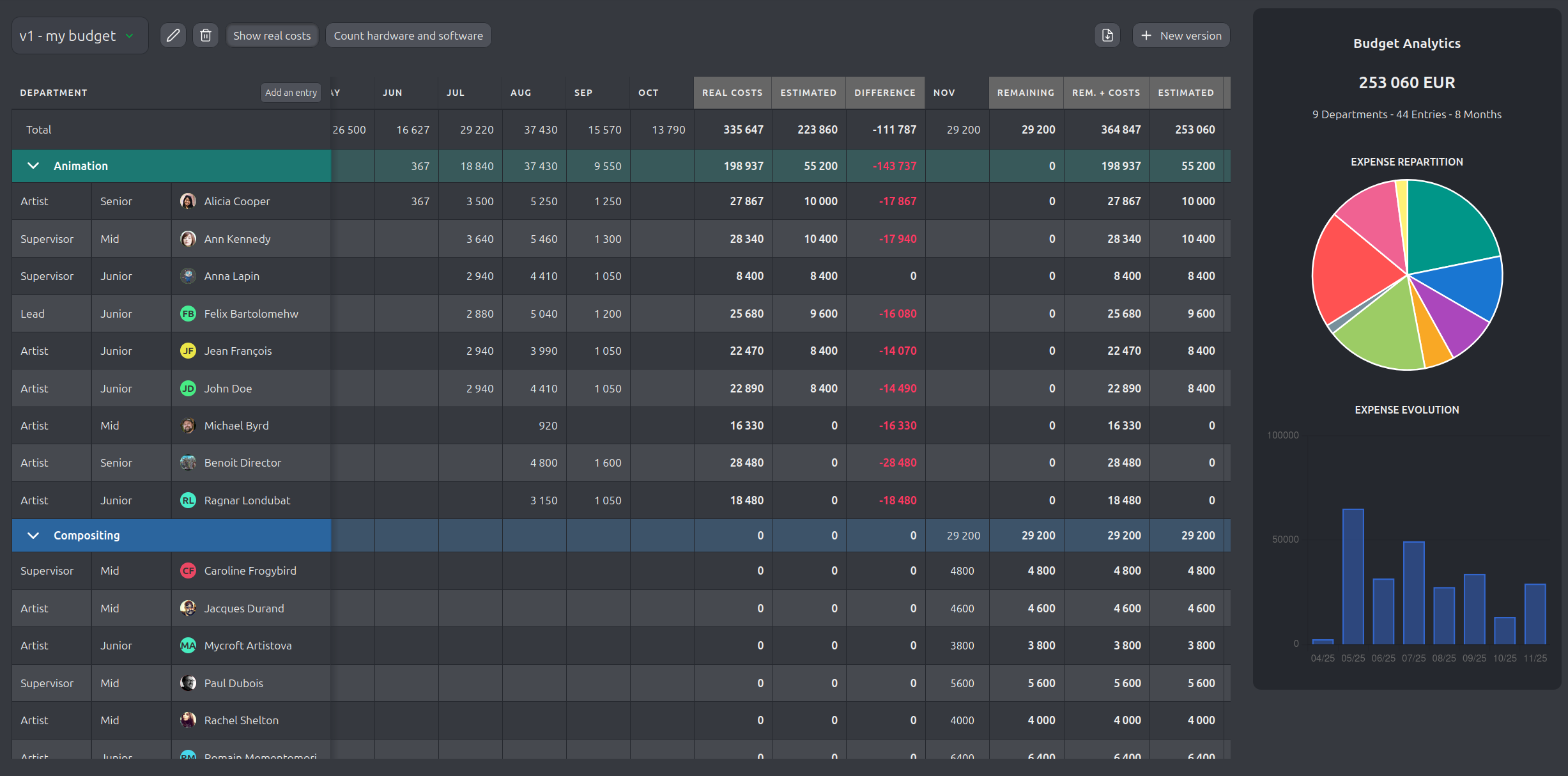 With Kitsu, you can now forecast your budget and try different scenarios. It includes software and hardware costs. It also allows for comparison with real expenses.
