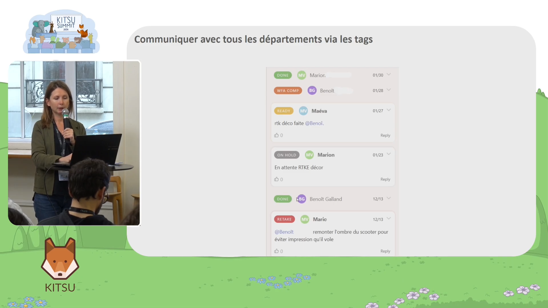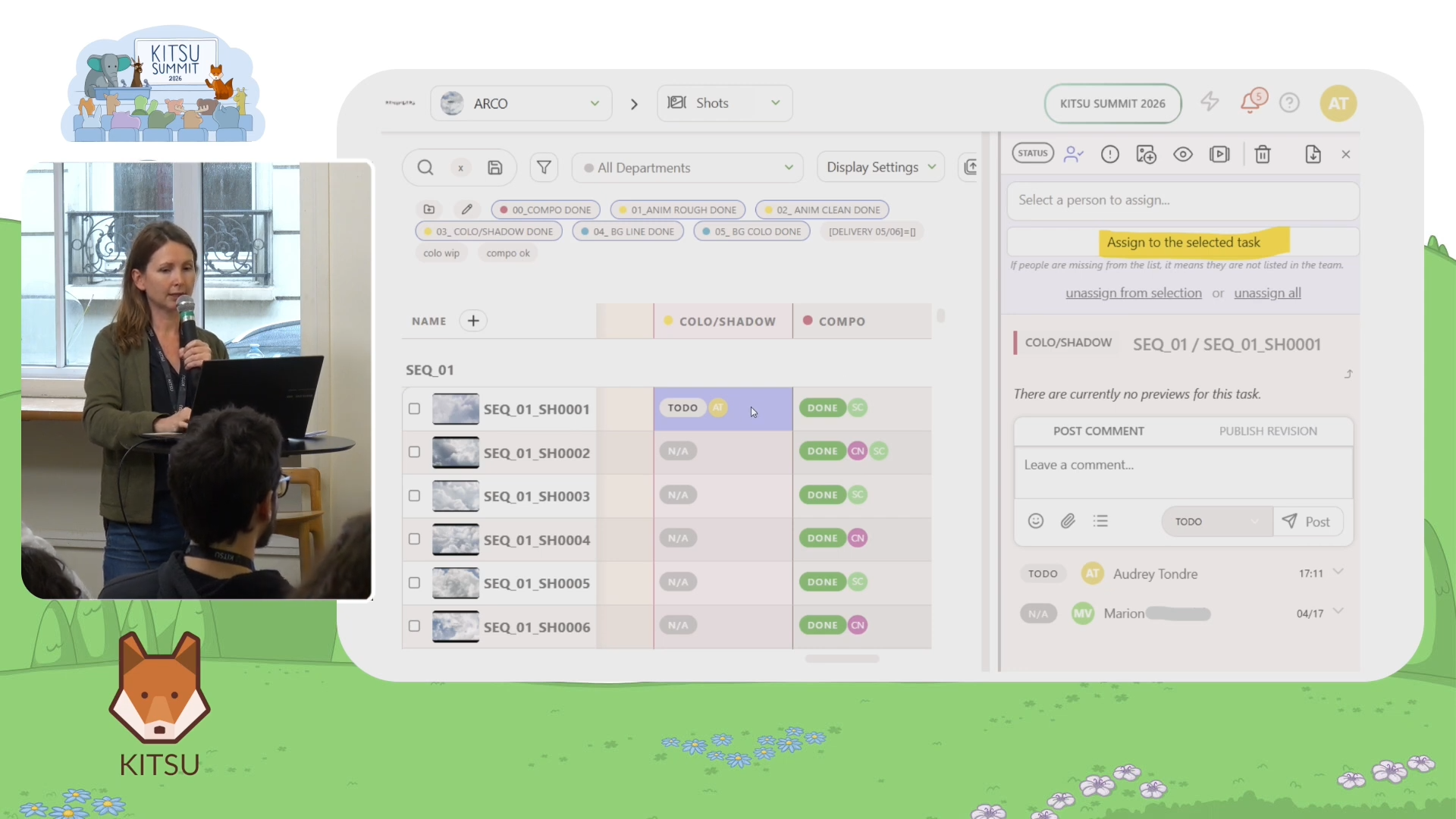She set up Kitsu before the bulk of the team arrived. By the time animators and background artists joined in large numbers, the tool was already in place and populated. They arrived to a working system rather than a work-in-progress.