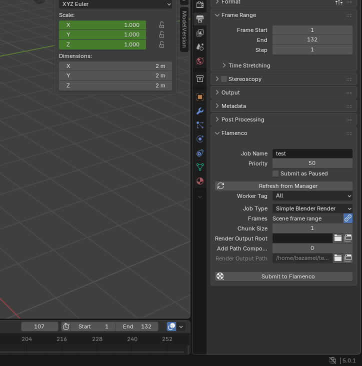 In the Render Properties tab in Blender, scroll down to the Flamenco panel.