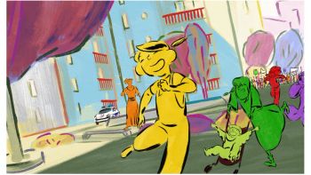 If original music is required, the composer creates a score that complements the animation.